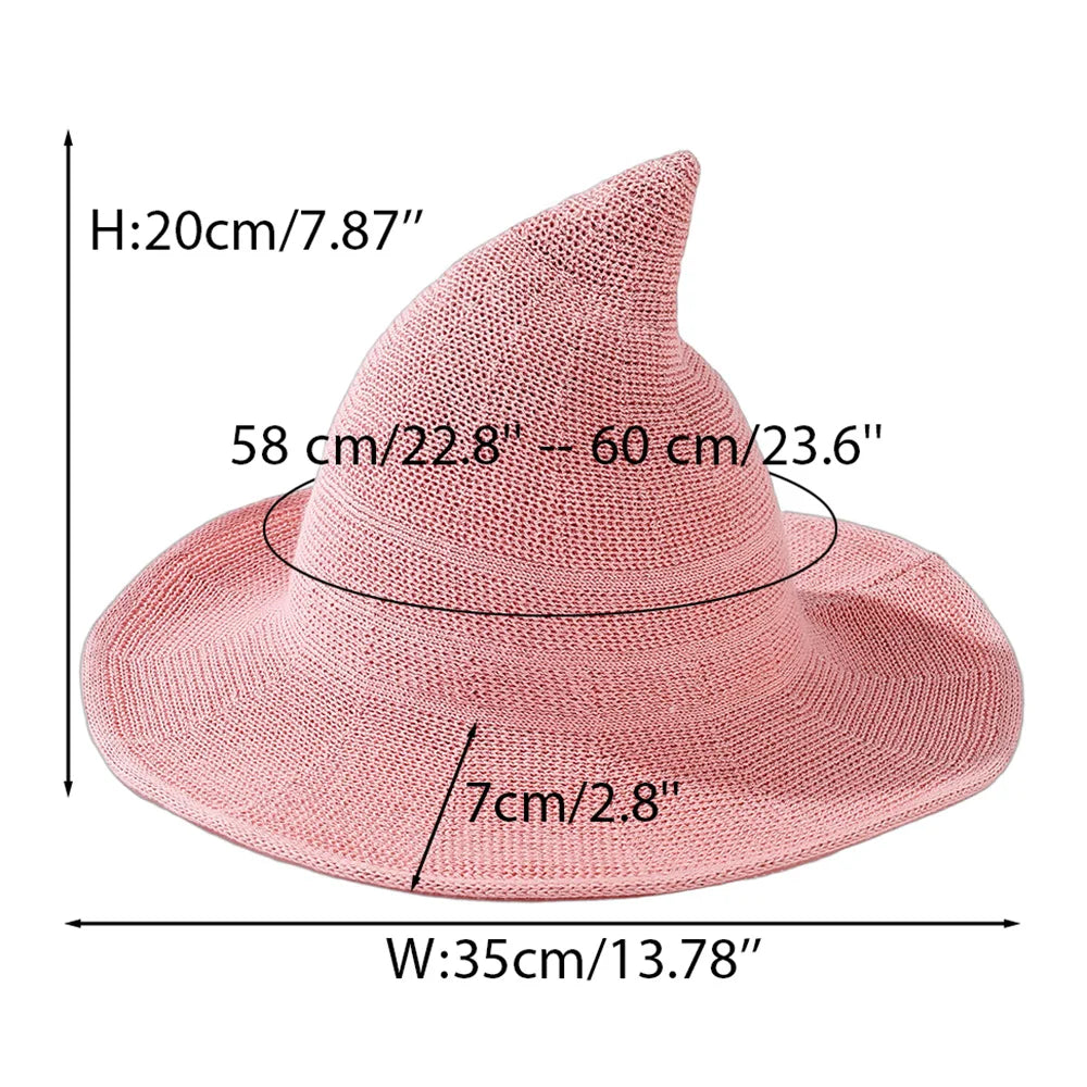 English: Cast a spell with our enchanting long point witch hat! This comfortable knitted design is perfect for Halloween parties, cosplay events, and magical costume celebrations. Ideal for women who want to add mystique to their look.