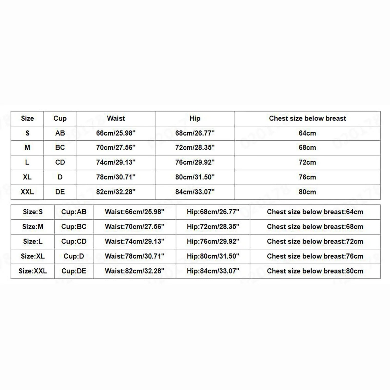 - Sizes: S-XXL (accommodates cup sizes AB-DE)